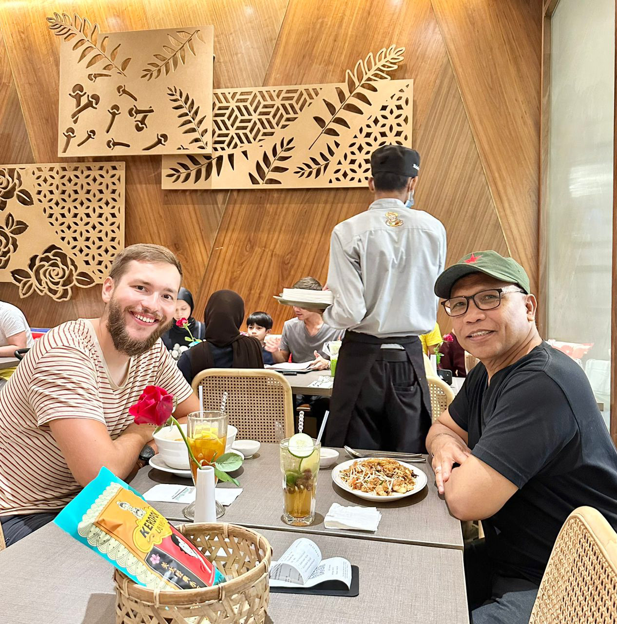 Schon am ersten Abend gesellte sich die Mutter mit ihrem Ehemann, einem deutschen Auswanderer, zu uns. Die Verbundenheit der Familie wird auch in den nächsten Tagen deutlich. Quasi an jedem Abend und zu jeder Mahlzeit ist reger Betrieb im Haus oder Restaurant. Am ersten Tag werde ich zu einer malaysischen Hochzeit mitgenommen. Es ist zwar nur ein Pflichtbesuch, und wir gratulieren nur kurz, essen und fahren dann wieder. Trotzdem ist es ein schöner Einblick in die malaysische Kultur. Das Event findet in einem großen Raum einer Einkaufsmall statt. Der Raum ist über und über dekoriert mit Plastikblumen, der Name des Raumes ist „Secret Flower Garden“. Ganz so „secret“ ist er aber nicht, er befindet sich in einem Seitentrakt einer Shoppingmall neben noch zwei anderen Räumen. Innerhalb merkt man aber nichts davon, die Atmosphäre ist geschäftig und herzlich. Es gibt Unmengen an Essen und genau so viele Fotos. Mir wird ein besonderes Dessert angeboten, eine Art fermentierter Reis. Ich bin kein Fan von Alkohol, auch nicht in süßen Desserts. Da hier aber alle muslimisch sind und auf der Verpackung groß „halal“ steht, rechne ich mit nichts Schlimmem. Daher bin ich ziemlich überrascht, als ich den Reisblock beiße. Der Fermentationsprozess muss ziemlich weit vorangeschritten sein. Es schmeckt mehr nach Alkohol als jede Tiramisu, die ich je gegessen habe. Angeblich ist es okay, schmeckt aber nur nach Alkohol, soll jedoch keinen enthalten. Naja, ob das wirklich so ist, kann ich kaum glauben.