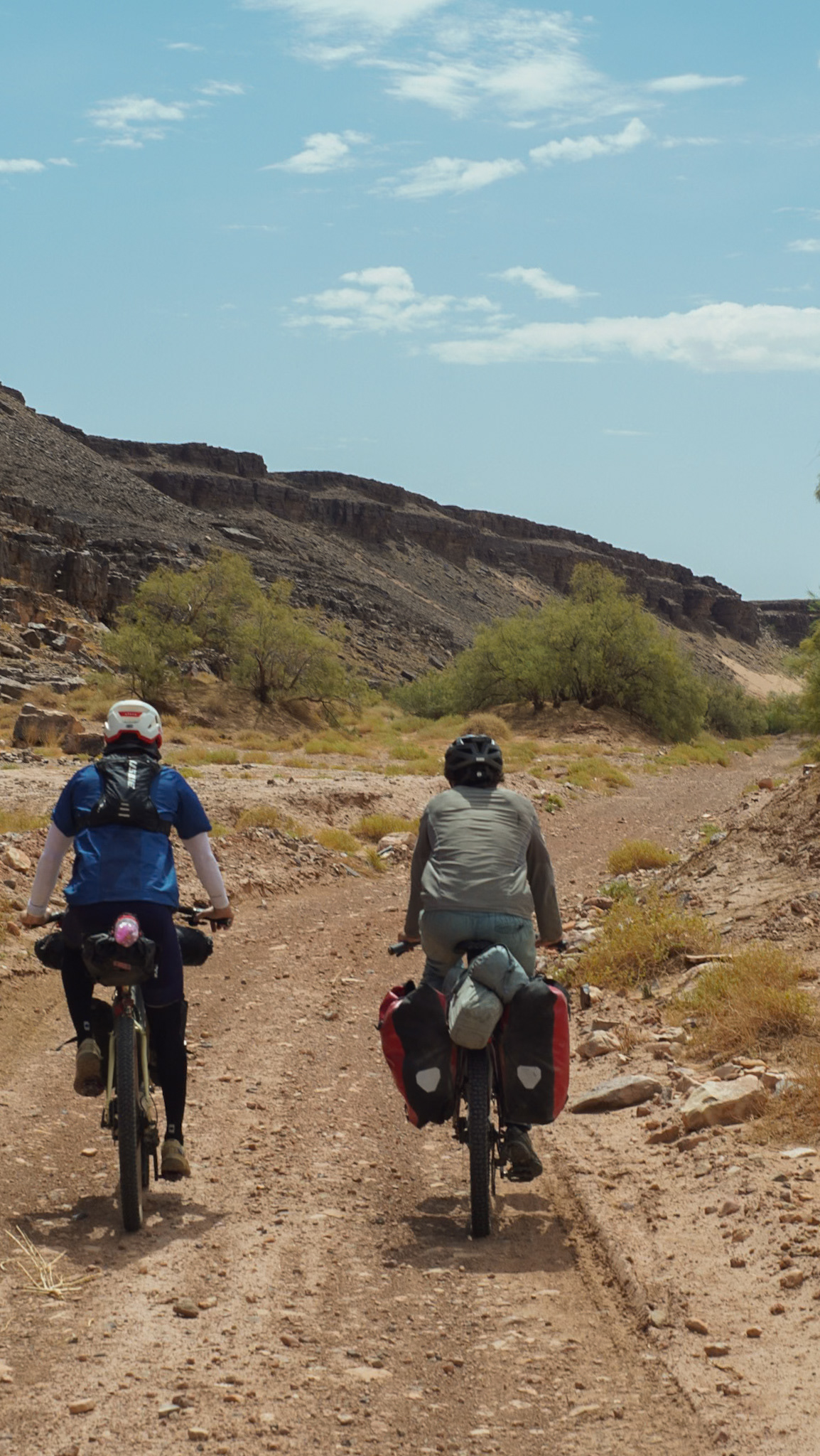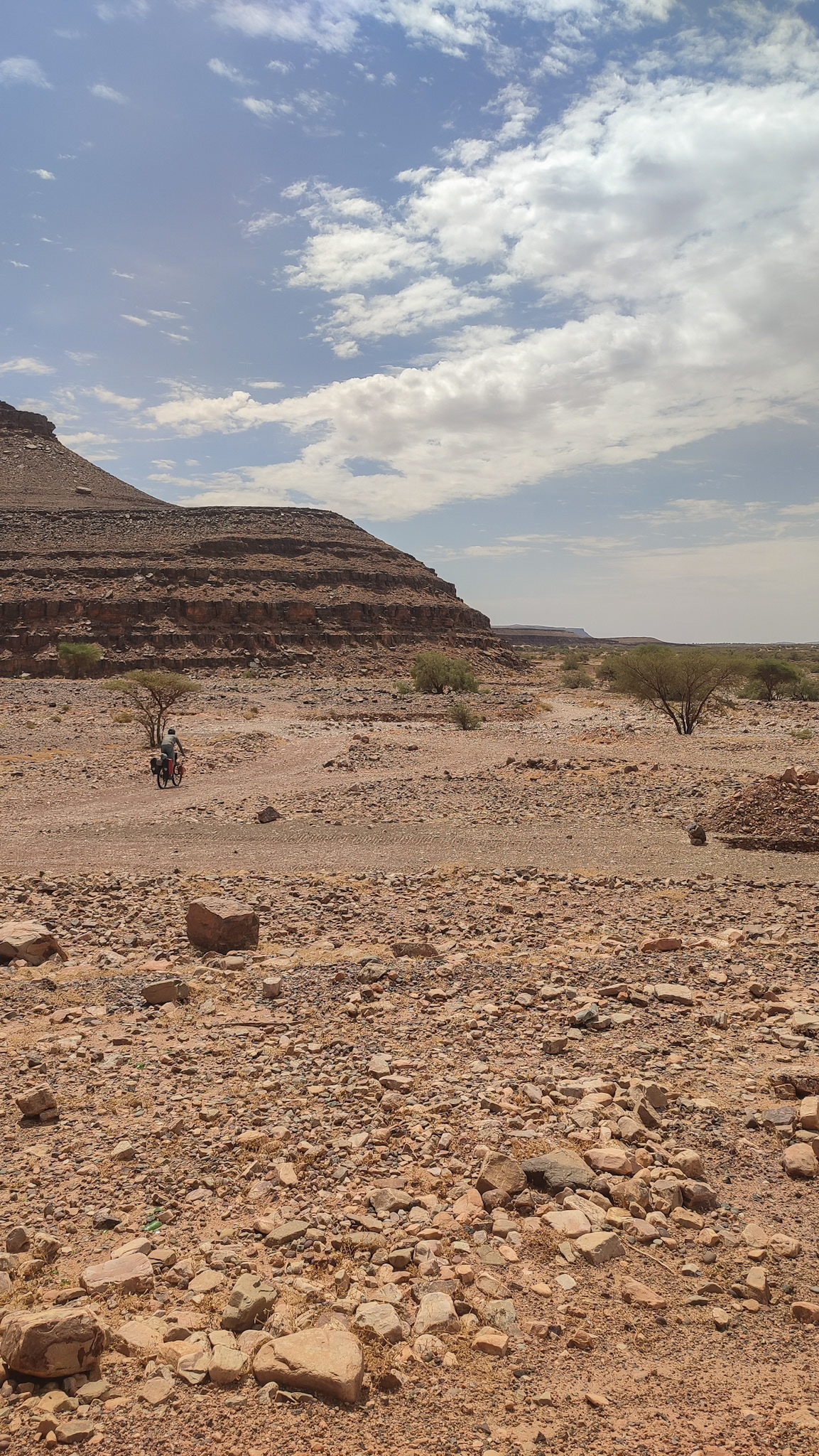 Basil ist in der Zwischenzeit auf der original Offroad Route unterwegs, Jack und ich hatten uns entschieden, erstmal auf der Straße zu bleiben. Er aufgrund der traurigen Nachrichten von zu Hause und dem Sonnenstich, den er immer noch verdaut. Ich, um etwas ruhiger in die Reise zu starten und dem Körper etwas Zeit und Raum zu geben, um sich an die neuen und harschen Gegebenheiten zu gewöhnen. Bereits nach 15 km merke ich den fehlenden Trainingsstand und fange an, mir Sorgen zu machen. Irgendwie läuft es dann aber trotzdem. Das Radfahren mit Jack fühlt sich an, als hätten wir uns nie aufgeteilt.