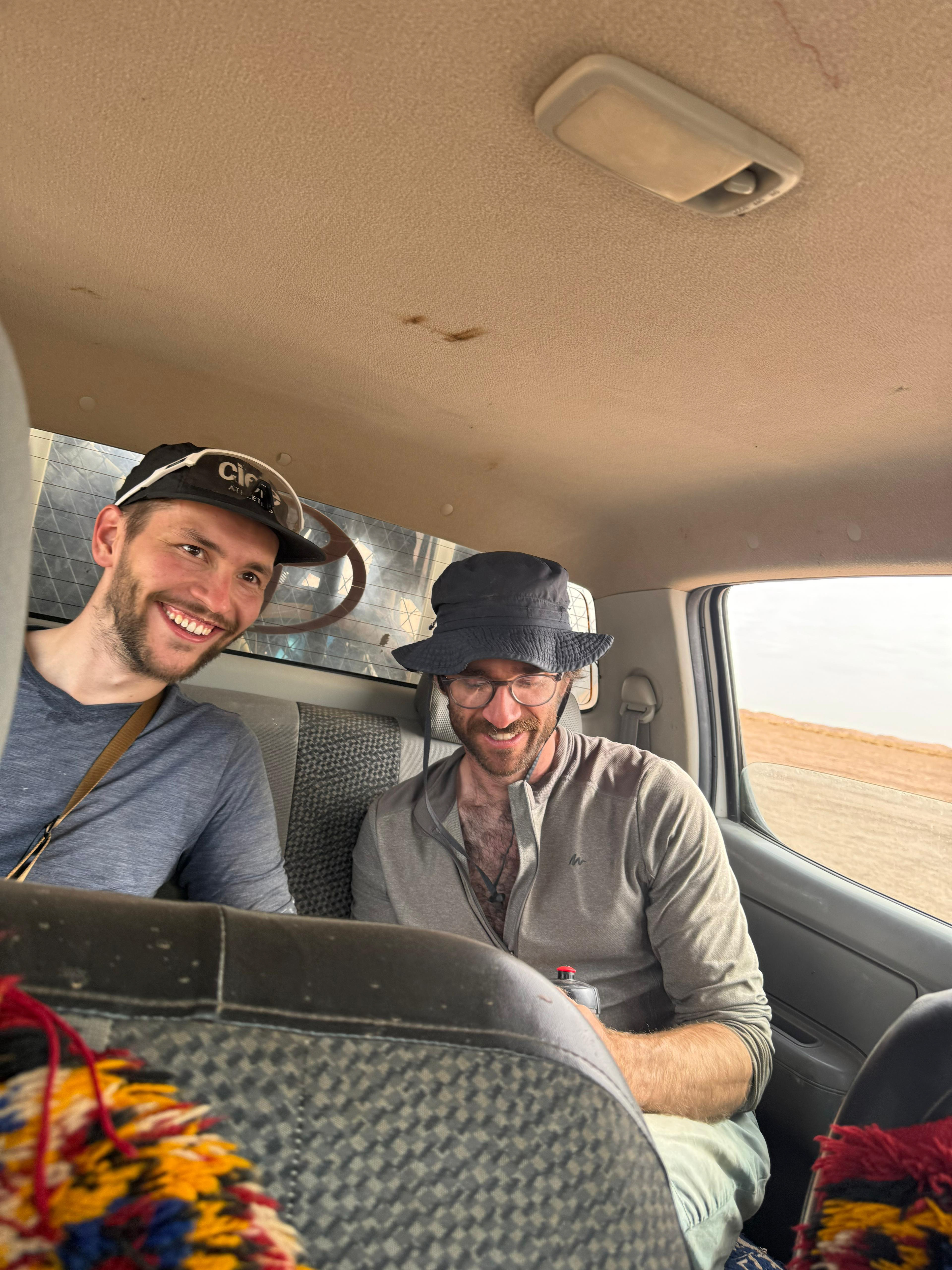 Am Abend haben wir noch viel diskutiert und überlegt, wie wir heute weiter fahren sollen. Wir wurden bereits mehrmals gewarnt, und nach dem Tag heute sind wir uns doch etwas unsicher. Im letzten Jahr ist ein deutscher Motorradfahrer zu dieser Jahreszeit ums Leben gekommen. Immerhin bekommen wir nicht, wie andere Radfahrer, Bilder von seiner Leiche gezeigt. Von mehreren Männern haben wir gesagt bekommen, dass von nun an ein Stück mit sehr viel Sand beginnt, ca. 18 Kilometer potentielles Schieben lägen vor uns. Das Ganze deckt sich mit Erfahrungsberichten aus dem Internet. Viele Optionen bleiben uns nicht. Basil schlägt vor, um 3 Uhr aufzustehen und so noch im Dunklen drei bis vier Stunden zu schieben, um möglichst weit ohne Hitze zu kommen. Wenn der Sand zu tief ist, würden wir in der Zeit aber auch nur ca. 13 Kilometer schaffen und wie es danach mit der Sonne aussieht, wissen wir nicht. Ich bin kein Fan, auch der Host rät uns davon ab. Er hat dafür einen anderen Vorschlag, ca. 40 Kilometer entfernt verläuft eine Piste. Sehr steinig und nicht leicht zu fahren, aber immerhin ohne Sand. Er könnte uns dorthin bringen, und wir fahren von dort weiter. Es kratzt etwas an unseren Egos, aber am Ende sind es die 18 Kilometer Schieben und das potentielle Risiko nicht wert. Ich habe gestern aber so sehr gelitten, würden wir heute einfach aus der Wüste herausgefahren werden, fände ich es auch in Ordnung.