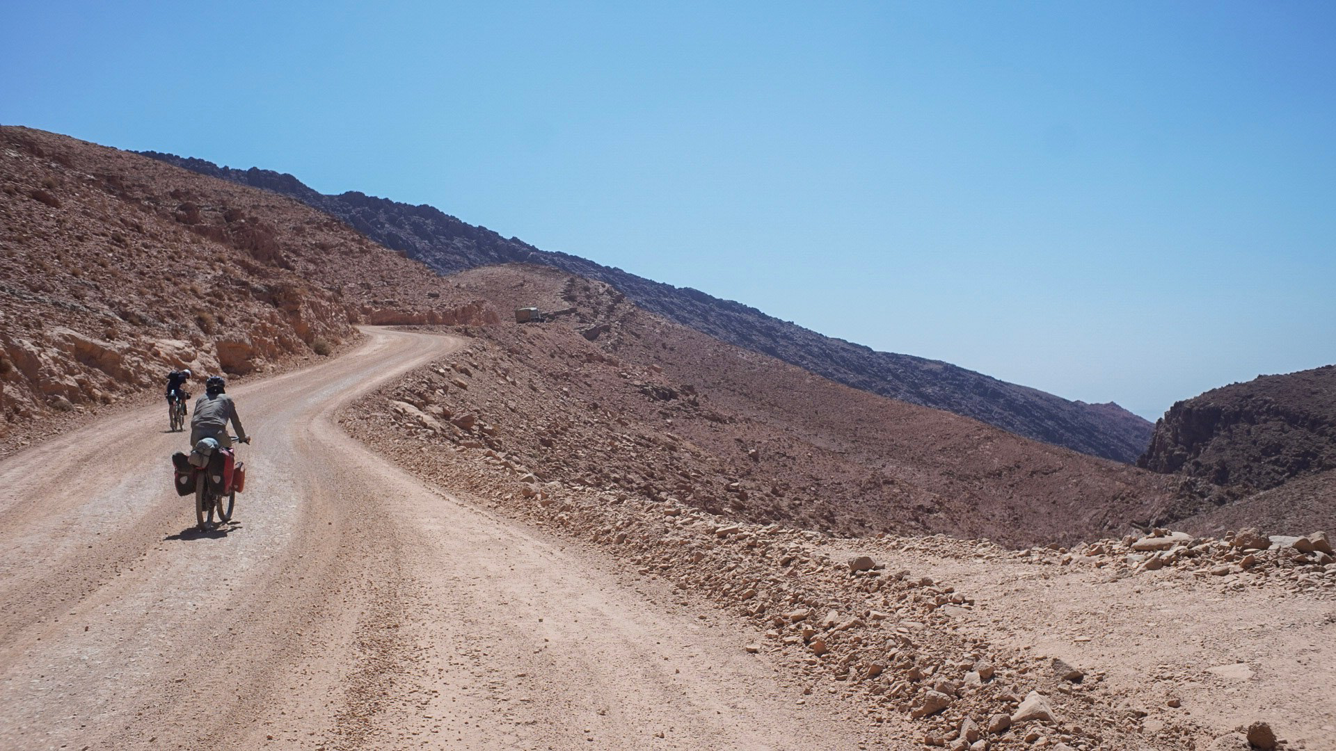 Der Schweiß läuft mir in die Augen, meine Lunge pfeift. Was gestern noch als seichter Anstieg begann, geht heute als Albtraum weiter. Der Anstieg ist gnadenlos steil, der Untergrund lose. Er besteht aus kleinen Steinen. Bei über 15 % Steigung kommt man nicht schnell voran, und die Sonne ist bereits stark. Immer wieder schiebe ich mein Rad, während der Fahrt scheint es immer eine gute Alternative und sicher leichter. Sobald man aber einmal neben dem Rad steht, ist es gar nicht mehr so leicht und Fahren immer die bessere Option. Dennoch ist die Laune auf einem Hoch, heute erwarten uns nur 50 Kilometer und am Ende eine Unterkunft mit Dusche. Wir nennen es einen Pausentag. Wirkliche Erholung ist es natürlich trotzdem nicht.