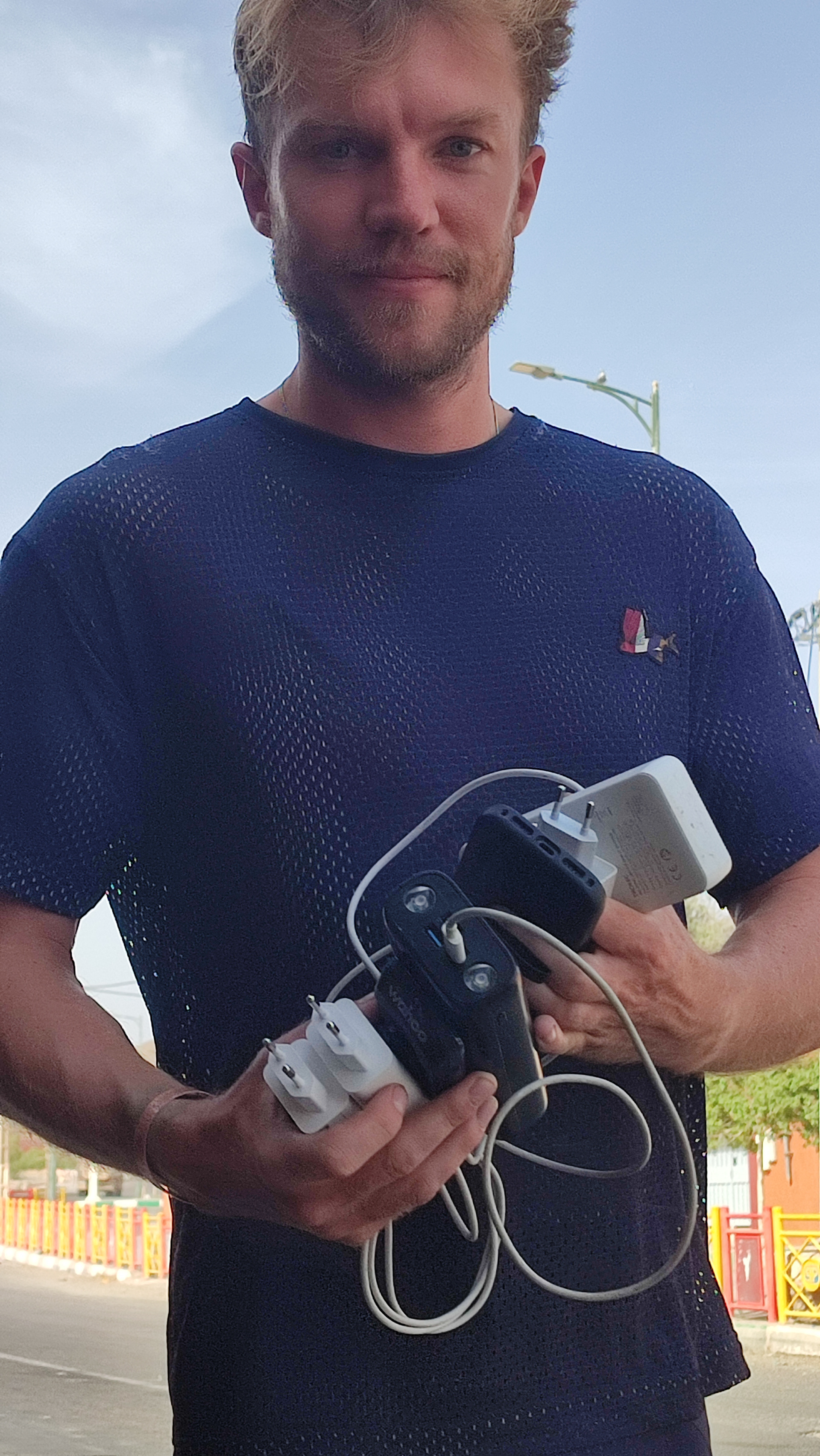 Die Nacht war irgendwie etwas unruhig. Ich weiß nicht, ob es am Wind oder an meinem unruhigen Magen lag. Für Letzteren nehme ich extra noch zwei Kohletabletten ein. Danach stehe ich direkt noch auf, binde mein Handtuch fest und hole meine stinkenden Radklamotten ins Zelt. Gestern haben wir noch Witze über wegfliegende Zelte gemacht und wie lustig die Videos davon sind. Kurz darauf läuft Jack gerade zur richtigen Zeit an seinem Zelt vorbei, um es festzuhalten. Die Rettungsaktion im Dunkeln unterhalb der Straße wäre sehr interessant geworden.